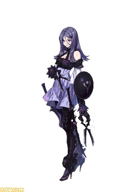 Three, the fourth Utautai sister, governs the forest country. According to Famitsu, the purple-haired Utautai also seems to have a following among the regular soldiers. She has a rather languid personality and is said to be quite lethargic, which could explain why some of the soldiers have found a likening to the easy-going sister.