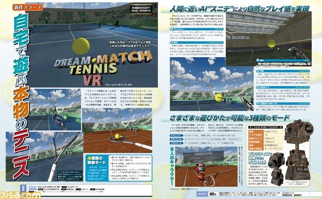 Bimboosoft announced a new PlayStation VR game in this week’s issue of Famitsu magazine with Dream Match Tennis VR, which is said to have super realistic AI opponents. Details on features are light for now, but the magazine preview tells us that the game emphasizes on tennis racket and ball movement and spin, angles, and behavior. A big part of this title is its AI that is being made to be as lifelike as possible to provide a more natural gameplay experience. Dream Match Tennis VR is in development for PlayStation VR.