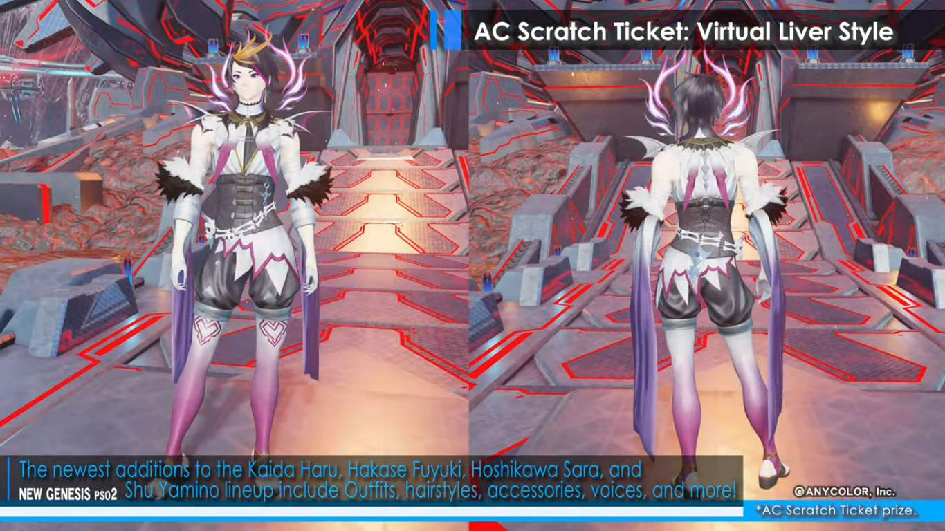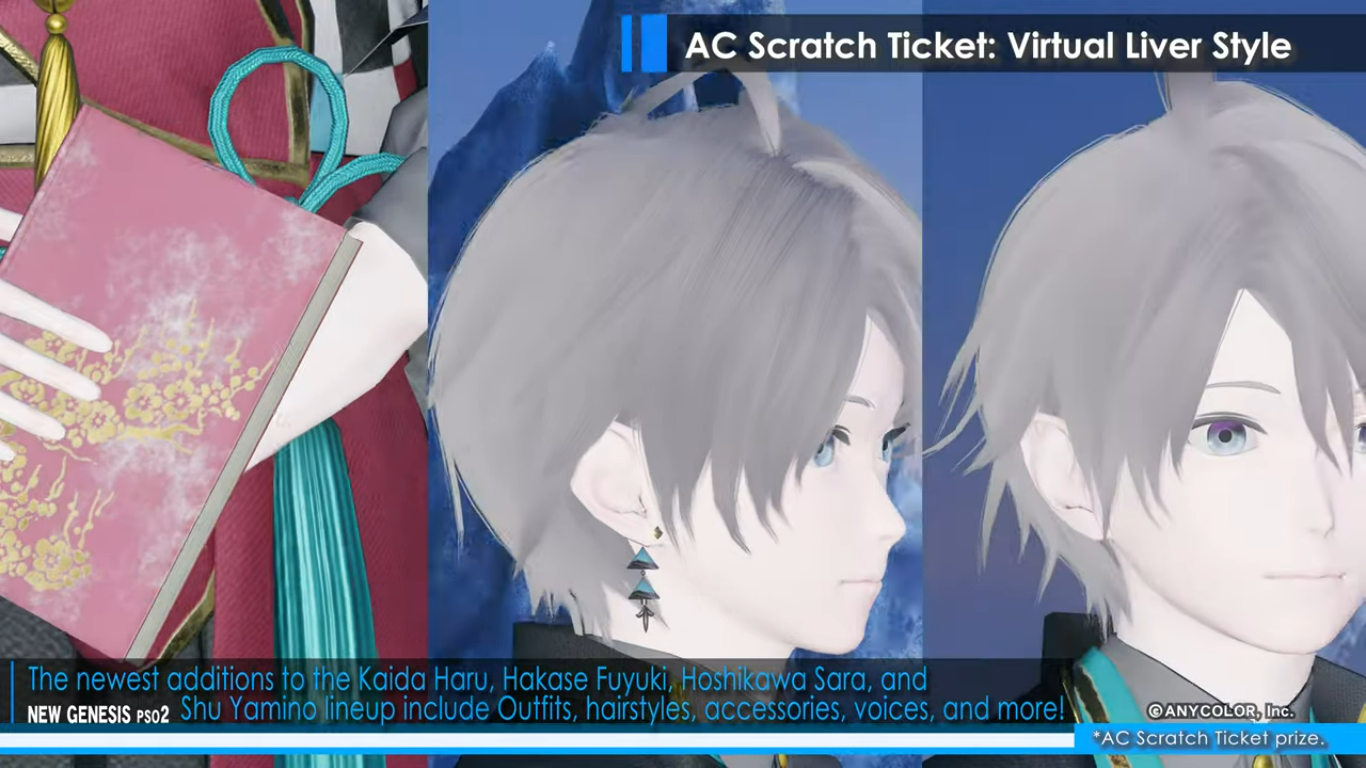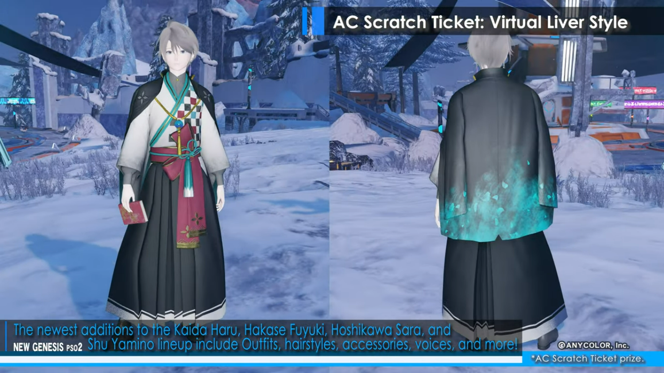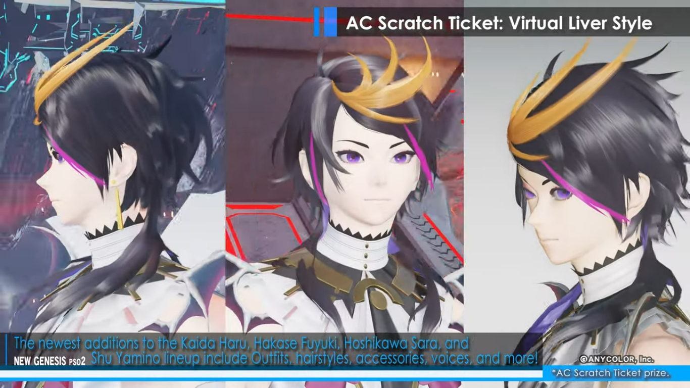 A new video shared by Sega brings more information about the new collaboration event featuring Nijisanji VTubers in Phantasy Star Online 2: New Genesis. The Virtual Liver collab will come with the next content update for PSO2: New Genesis in February 1, 2023. The game will be decorated with cutouts of Nijisanji members, and players will be able to obtain Nijisanji-themed equipment, accessories, hairstyles, and more. Phantasy Star Online 2: New Genesis is preparing to welcome some of the members of the Vtuber group company into its world. Life-size cutouts of Kaida Haru, Hakase Fuyuki, Hoshikawa Sara, and Shu Yamino will appear in Central City. Region Mags in the game will be decorated for the duration of the event, as well. As a login bonus, players can obtain stickers of logos and autographs of the Vtubers to decorate their equipment. The event also brings new AC Scratch Ticket rewards, under the “Virtual Liver Style” line. Again, new outfits, accessories, hairstyles, and voices inspired by Kaida Haru, Hakase Fuyuki, Hoshikawa Sara, and Shu Yamino will be distributed to players through AC Scratch Tickets, a lottery system in which players use ARKS Cash to obtain items and cosmetics. You can check out some of the items included as AC Scratch rewards below:
