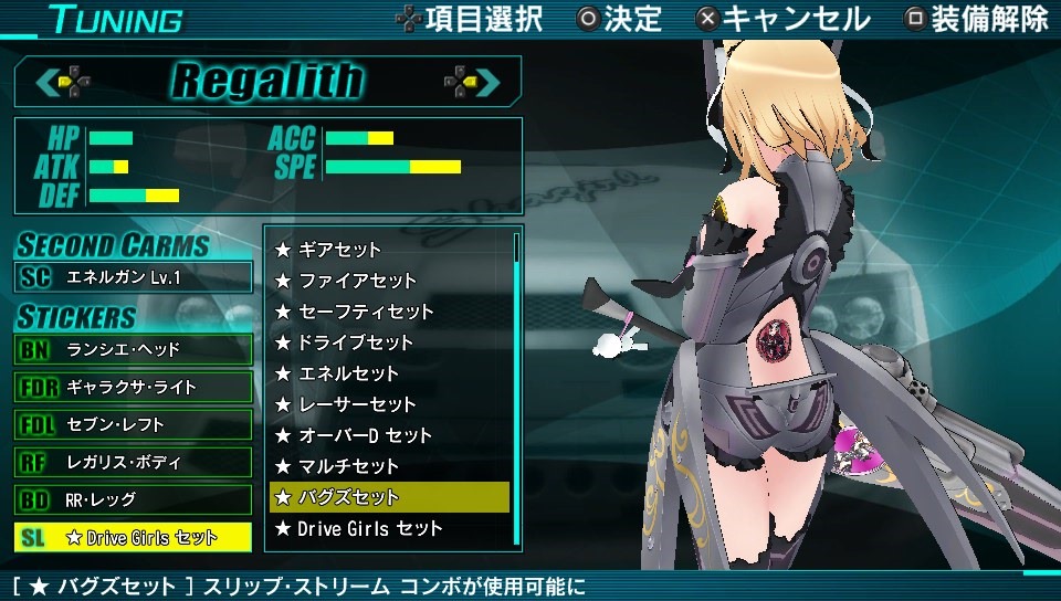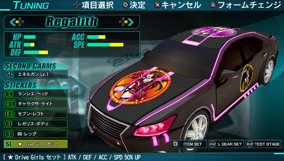 There’s a variety of customizations you can do, including car stickers. You can get status ups and also some extra with the set bonuses. These stickers are also shown as body art when the girls are in their human forms.