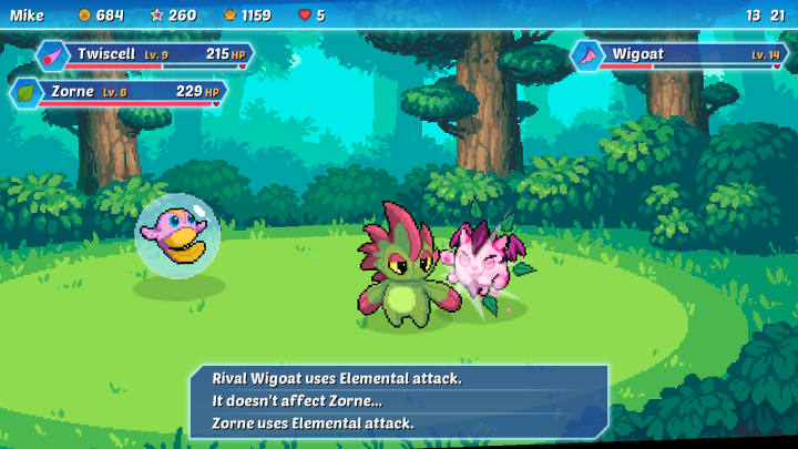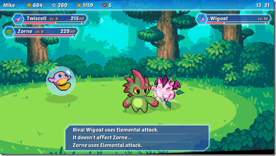 Dunpets Colors is set to offer twenty kinds of creatures (called Dunpets) at launch, each of which can reach four growth stages that changes its appearance should it fight enough other Dunpets. These battles will be done in turn-based combat where the game’s twelve elemental types will come into play. Each Dunpet is tied to an elemental type, making them more or less effective depending on what they are fighting against. However, players bring two Dunpets into any given fight, so they won’t be stuck with a single creature of the wrong type.