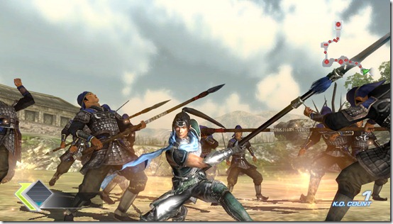 The demo put me in control of Zhao Yun and the first thing I noticed were moving dots on the screen. These were actually my fingertips; Dynasty Warriors tracked the points I touched on the rear touch panel. I mowed down a wave of enemies and charged up a musou meter. Before I send Zhao Yun into a frenzy, the Tecmo Koei rep stopped me and explained the Shadow Musou feature.