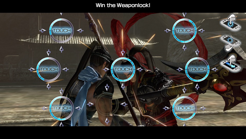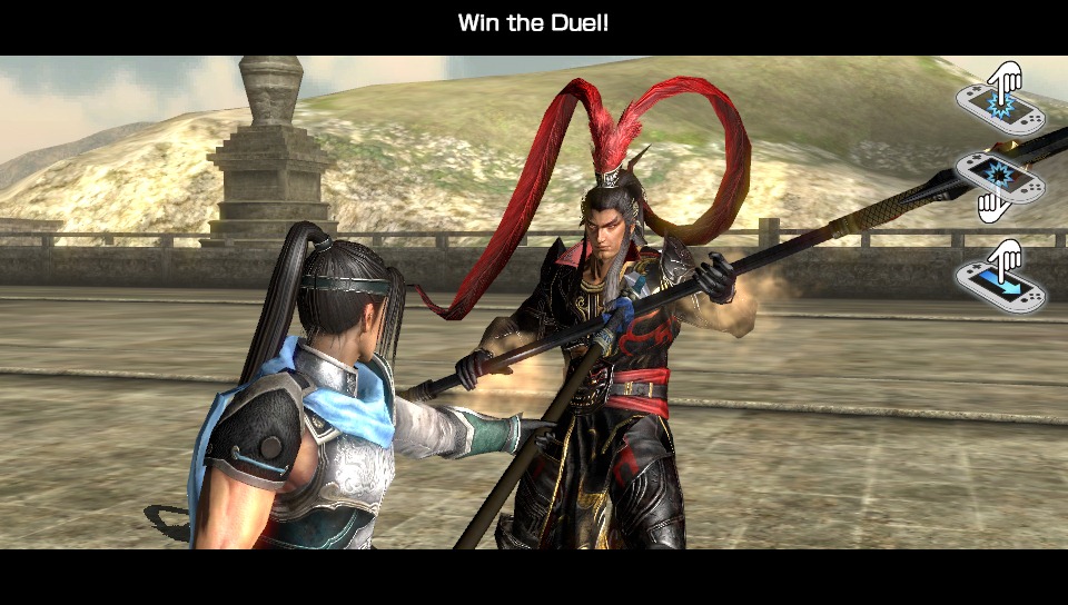 The demo concluded with a Lu Bu duel. Instead of mashing attack, I swiped the touch screen to strike and tapped the rear touch pad to block. You can still move around to strike Lu Bu with the analog stick, but the battle was more like Infinity Blade or perhaps Monster Hunter: Dynamic Hunting than a regular Dynasty Warriors bout.