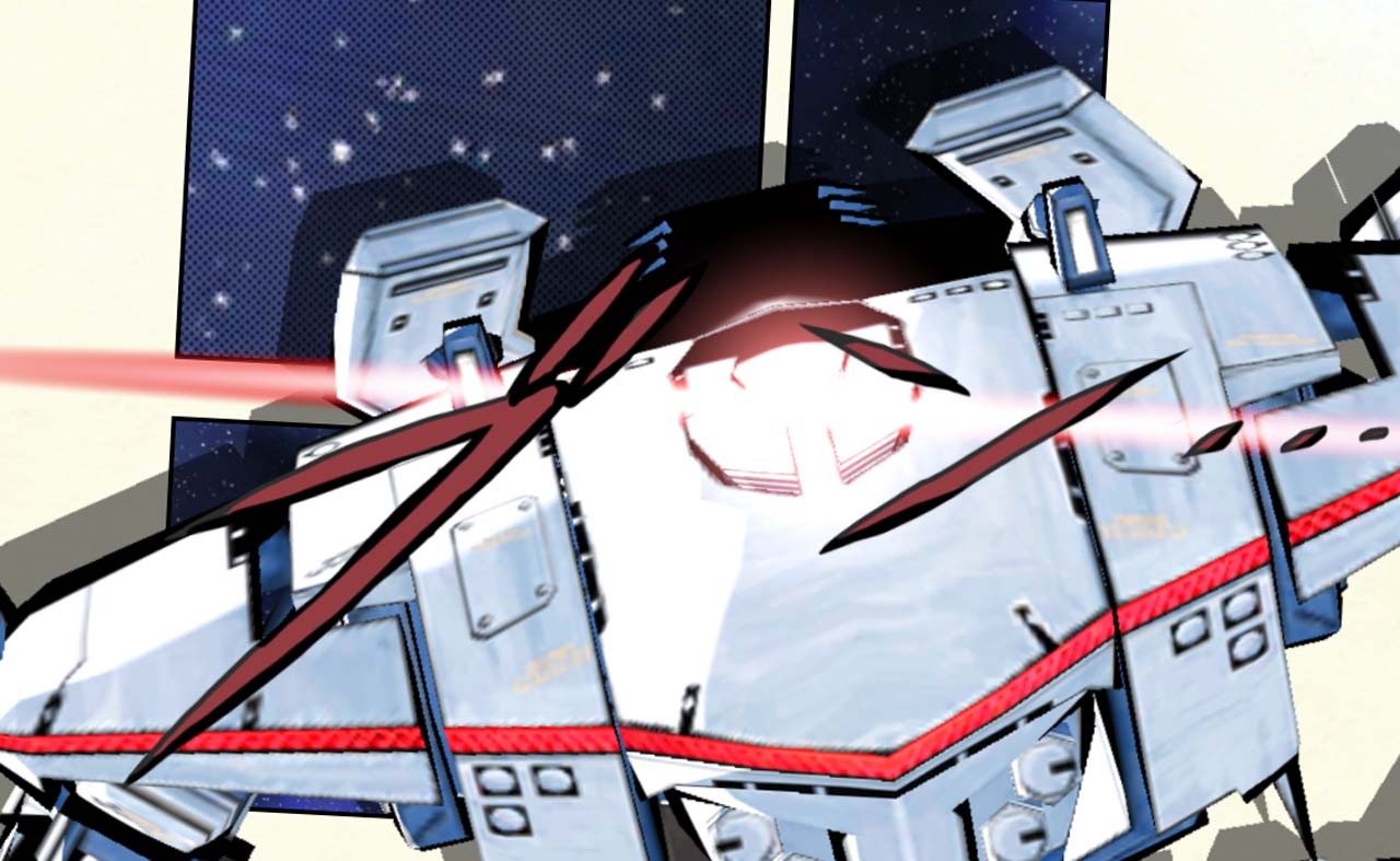 E.X. Troopers begins when Bren leaving his home town and traveling to the NEVEC Academy. A group of unknown Vital Suits attack the transport and with the help of his instructor, Walter, Bren pilots the experimental Gingria and defeats the attackers, but all of the passengers have to leave the ship and land on EDN-3. Bren and Walter are seen in an escape pod falling towards the planet’s atmosphere.