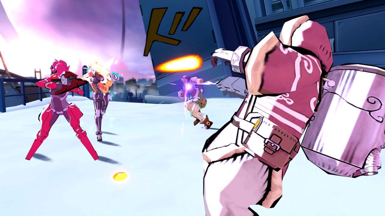 Lost Planet series producer Kenji Ohguro said they wanted to make a “party” game like shooter after Lost Planet 2. That’s how E.X. Troopers started and compared to Lost Planet 3’s struggle of a family man E.X. Troopers has a fun vibe.   The characters in E.X. Troopers make a crash landing and send a distress signal. All of that excitement must have made Bren (the dude with pink hair) hungry, right? If you stop by the cafeteria you can eat a meal that gives you a temporary status boost. The effect changes depending on what’s on the menu. Snow Pirates are waiting outside so you want to pick a weapon before leaving the base.