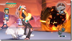 One of the other players didn’t sidestep the second boss’ attacks and got killed pretty quickly. E.X. Troopers was pretty forgiving since downed allies can be revived if another player resuscitates them by running over and mashing the A button. Alternatively, an impatient injured player can come back to life by pressing A, but there is a penalty for doing this. The demo would end if two players died and weren’t resuscitated.