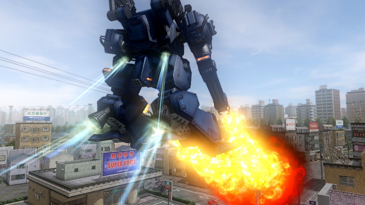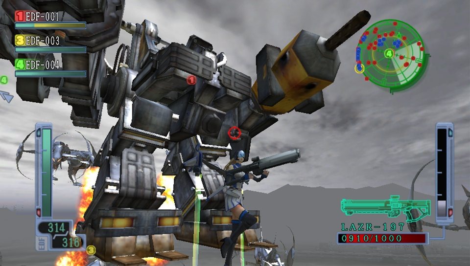 Earth Defense Force 2025 has vehicles, probably more vehicles than any other game in the series. Remember Battle Machine Velgata from Earth Defense Force 2017? The human forces have different versions of the bug killing machine. The standard type has a Gatling Gun and missile launcher. Close range combat Velgata has a flamethrower and shotgun. Velgata can also take to the skies using jets on its feet and back.