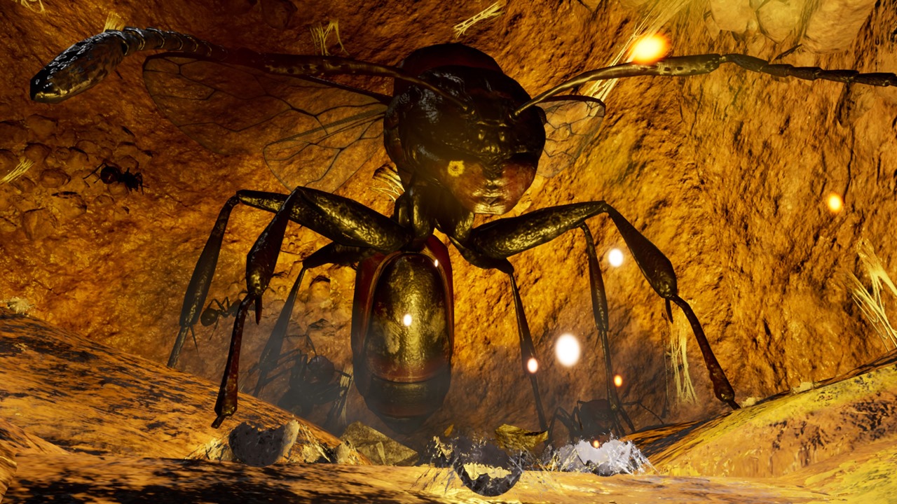 The EDF Squad go deep enough that radio communication is cut off. There, they find giant eggs that must have something to do with Rebellion’s activities. As the EDF continue onwards, the fight against the giant creatures, who seem to be protecting something, begins to escalate. Queen Ant