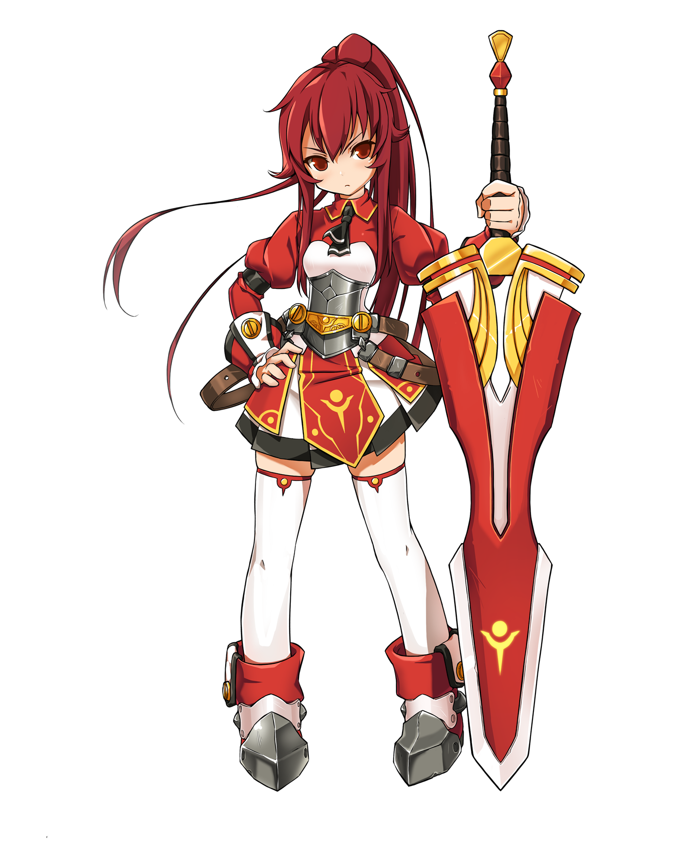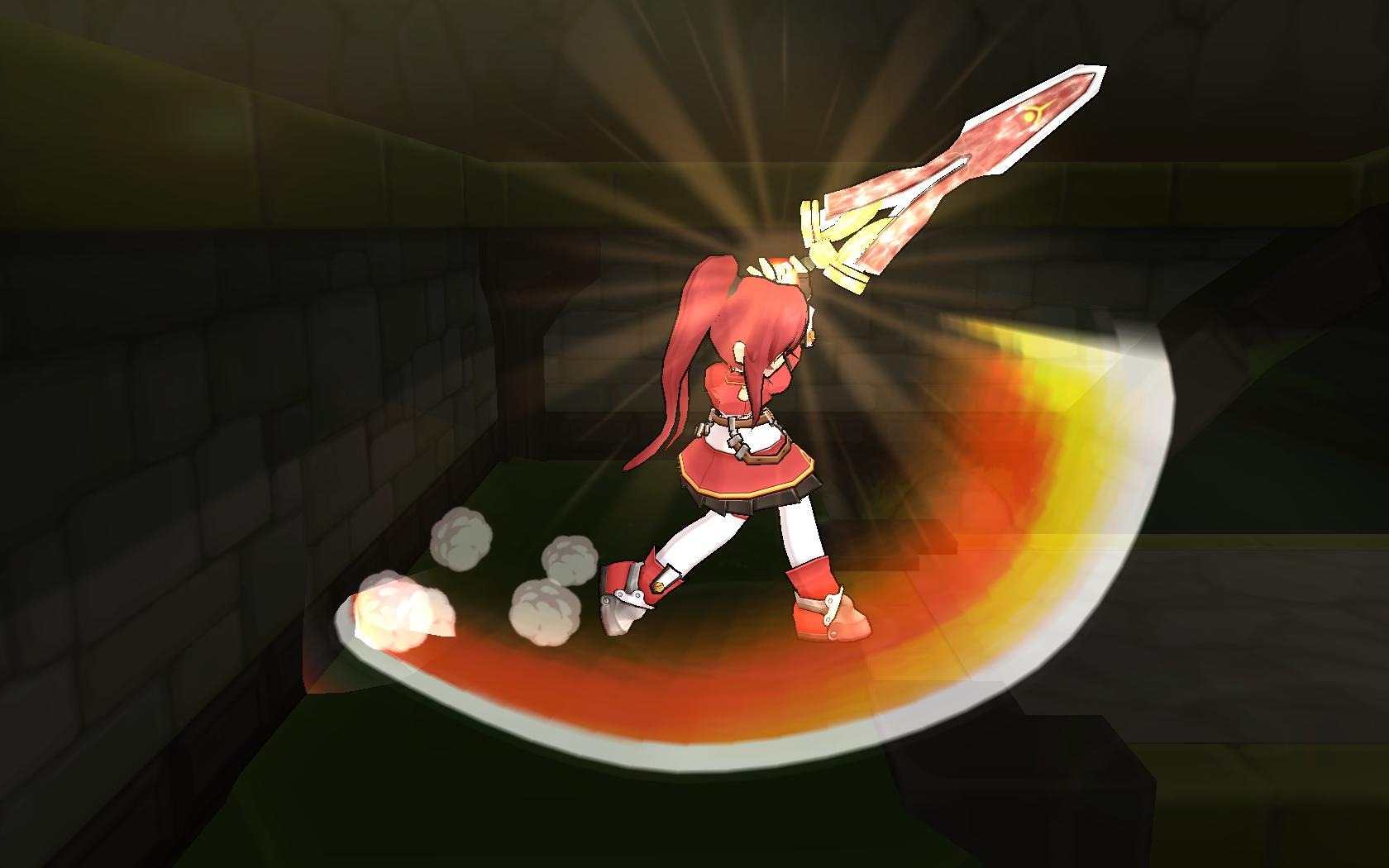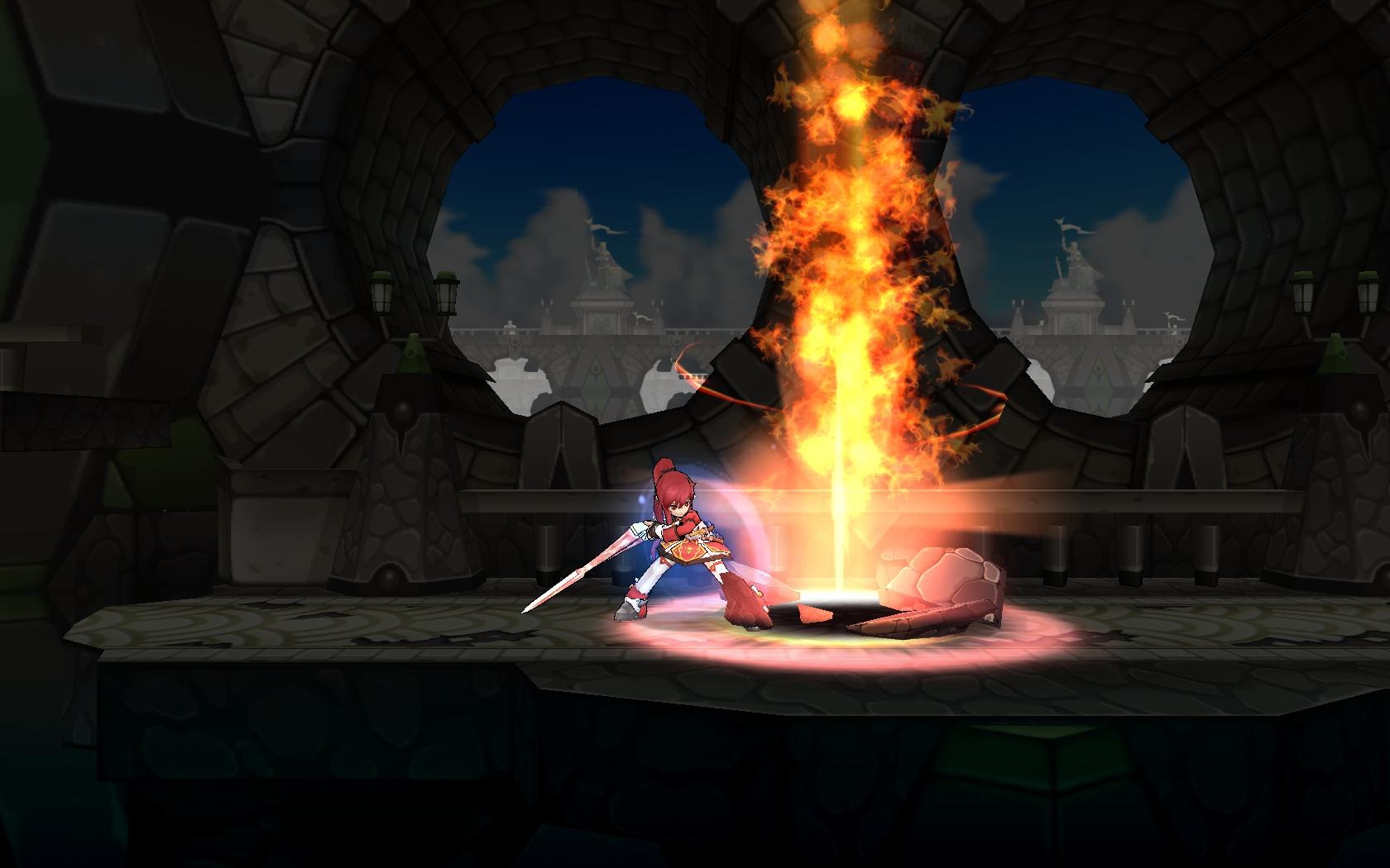 Elesis is a new playable melee character for Elsword who uses flame-based attacks and a mean two-handed claymore. Her style of combat follows the “Chivalry” system, which is an additional bar that fills up and allows for managing a new type of resource that makes her stronger when swappin’ between attacks.