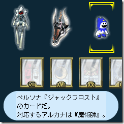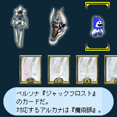 In Persona 3 Escape you get to play the scene in a new way. Both characters find themselves locked in. You have to use Personas to break out. The game is an adventure game so you have to investigate the room and pick the right Persona to use. When the game starts you only have Orpheus and Io. Players can collect Personas like Jack Frost, which is shown in a card selecting screenshot.