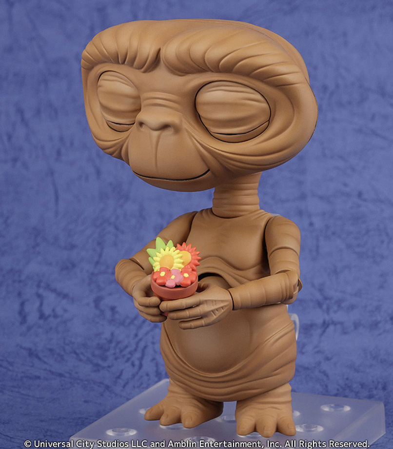 Good Smile Company revealed its ET Nendoroid, which will debut in 2024 worldwide. It will first show up in Japan in March 2024 and cost ¥7,700. The North American debut is set for Q3 2024 for $49.99. This ET figure only comes with two face plates. In one his eyes are open, and they’re closed in the other. However, he does come with various items to recreate poses. There is a glowing finger tip, for one. You can also pose him with a flower. He comes with a towel too. His arms and upper body are also more articulated than a typical Nendoroid, for additional poses. However, it isn’t possible to make his neck extend. Here’s a closer look at the ET Nendoroid: