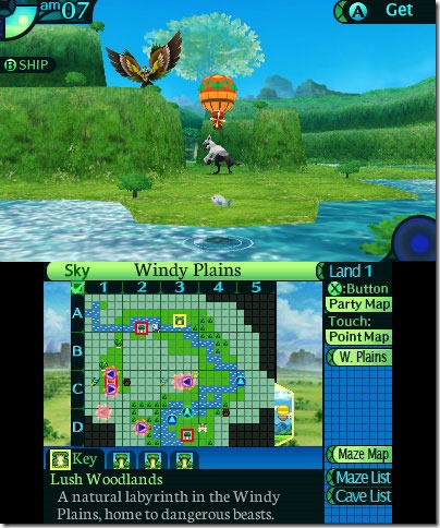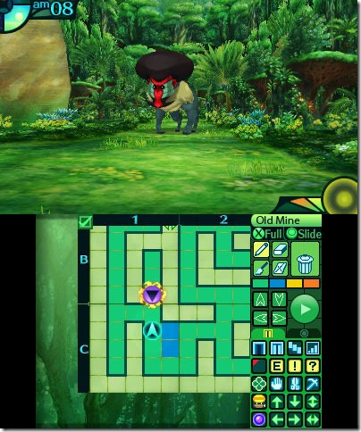 For example, in the Small Orchard dungeon, you were told that it would be a relaxing place, where you can train a bit before heading off to the larger labyrinth, the Lush Woodlands, right next to it. However, if you get confident and fight off some of the “strong” monsters there (little fawns, really), the game warns you about a roar echoing through the forest. On the map on the bottom screen, which shows the locations of particularly strong monsters, you’ll find a new icon that approaches you faster than you can move. Having an item to warp you out of the dungeon would be the best solution, but if that’s not possible, the only thing you can do is hope no monsters attack you and take up any precious turns while you make your way towards the exit with this new monster tailing you.