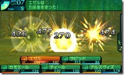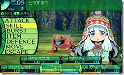 New skills are obtained through skill trees. All characters can also learn Burst Skills from books found in the game. Each character can equip one Burst Skills, which utilizes energy from a meter shared by the entire party. (See the number 4 and 5 in the screenshots below.) Full Force Fleeing, one of the Burst Skills, gives you a high chance of escaping a battle. Double Slash lets you hit an enemy twice and Command Assault gives your entire party an attack boost for the current turn.