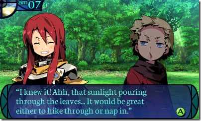 With no real drawbacks and an interesting motivation in the form of learning more about the other four characters (and the mystery behind Gladsheim, of course), I had a lot of fun with Story Mode and I think it was a wonderful addition to the game, especially with a whole new dungeon to entice avid explorers. Yes, you can transfer some data from Story Mode to Classic Mode or vice versa, but only after you finish one to the end. This means that you should choose one mode and stick with it; don’t try to skip between the two midway or you’ll end up losing all your data! Food for Thought: 1. Grimoire Stones are actually a bit more complicated than I explained above. Each skill on a stone has its own level; these are roughly equivalent to a Skill Level if you were to learn that skill normally. This normally just increases damage output and such, but if you want to use a skill that can, for example, only be used by a Sword but your character doesn’t have a Sword Mastery skill, that Grimoire Stone must have a Sword Mastery skill (taking up one slot) of the Sword Skill’s level or higher. This means that synthesizing and equipping Grimoire Stones isn’t just about gathering the most powerful Skills. It requires some forethought. 2. My favorite trick with the Highlander is, after learning the Turning Tide skill that allows your party to heal HP after you deal a finishing blow, to plow through a whole party of weaker enemies with the Legion Thrust skill. While Legion Thrust will consume some of your party’s HP, the amount you heal from defeating multiple enemies at once can make up for it threefold because the Highlander’s skill stacks! This is compounded with the lovely Floor Jump, so you can leap to earlier floors to exploit the poor hapless flies and wasps. 3. Story Mode is partially voiced. Animated sequences and some lines are completely voiced, and every character has their collection of amusing battle quotes. My favorite feature of voices is that your party members (usually the observant Simon or the hyper Arthur) will notice something observable in the dungeon and draw your attention to it. I would’ve missed so many shortcuts if it weren’t for them! 4. Finally, the OST between Classic and Story Mode has been completely changed. The tunes are still the same, but Story Mode uses much more modern instrumentation.