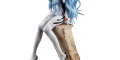 The figure itself stands at 225 mm tall (about 8 inches) including the base. The figure shows Rei Ayanami in her iconic white plugsuit, but with one major difference. While Rei’s hairstyle is typically cut short, the figure instead features the character with long, waist-length hair. She also sits on what looks to be a stone structure. Her appearance is based on a scene towards the end of Evangelion 3.0+1.0 and is a major plot point for the Rebuild of Evangelion film series.