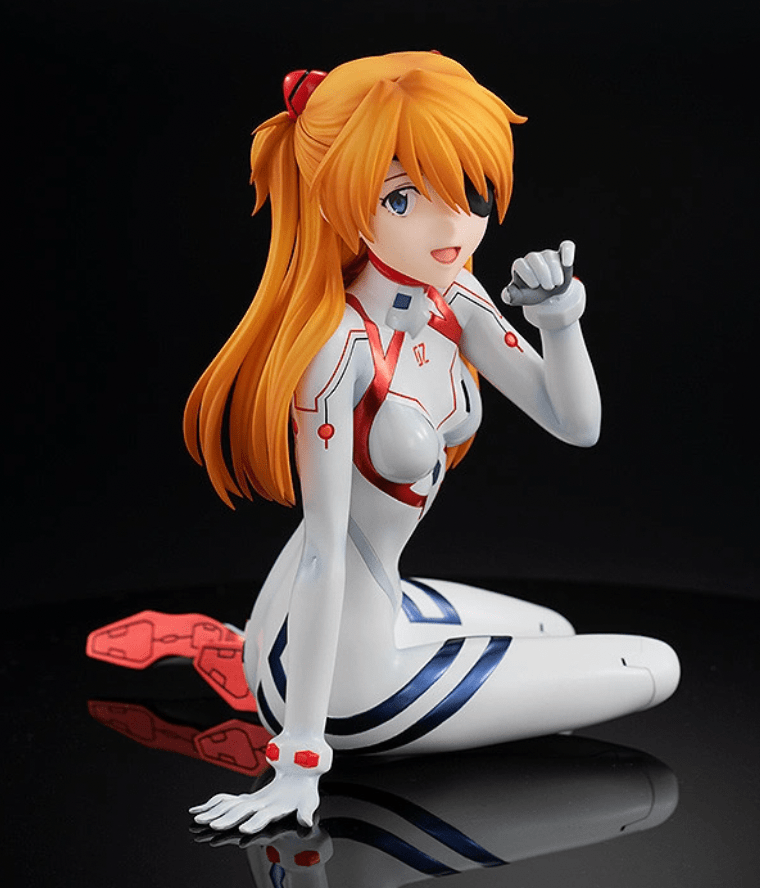 Good Smile Company is selling the new Rebuild of Evangelion Asuka, Rei, and Mari Newtype Cover figure set outside of Japan. The trio will debut in the country in August 2023. It will cost ¥41,800 there. The North American release is set for October 2023. There is a $290.99 standard version and $313.99 Newtype Special Set with reversible acrylic stand. For this set, Asuka Langley Shikinami, Rei Ayanami, and Mari Makinami Illustrious are all wearing the same white plugsuits. They also are in the same pose as seen on the Newtype June 2021 cover. This is a 1/8th scale figure set, which means they are almost five inches tall. When put together, the display is about eight inches long. First, here is how the Rebuild of Evangelion Asuka, Rei, and Mari Newtype Cover figure set with all three characters together.