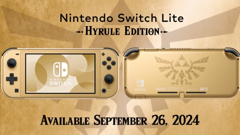 Nintendo announced the release of a Switch Lite based on the Legend of Zelda games at the end of the June 2024 Nintendo Direct announcement. This version of the Switch Lite comes in gold and has various designs and motifs from the games. It will be released simultaneously alongside the new game on September 26, 2024.