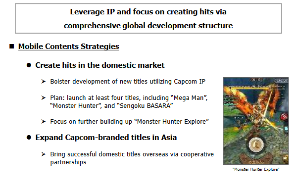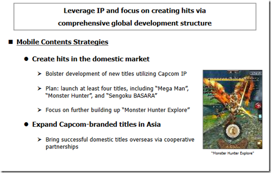 For the Japanese market, this fiscal year we plan to strengthen development of games using Capcom IP and release at least 4 new titles, including “Mega Man”, “Monster Hunter” and “Sengoku BASARA”. Moreover, as our expansion into the Asian region is necessary, we will continue to actively seek out partnerships with local companies there regarding titles that have performed well in Japan.