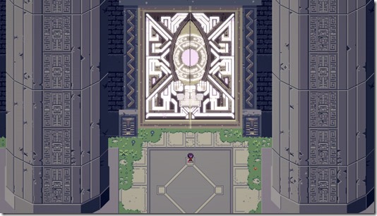 Ever wondered what a game like Shadow of the Colossus would be like in 2D? Perhaps Titan Souls will answer that question. Acid Nerve and Devolver Digital’s PS4 and Vita game offers a variation on the task of killing over 20 titans. Let me warn you, though, don’t think it means the experience will be any easier. For example, the titan I was facing in Titan Souls on the Vita was something of a bubble boss. The monster was in the center of some kind of gel, bouncing quickly around the dungeon. Running up to hack and slash it, a la Link, wasn’t an option. That’s because the hero of Titan Souls is an archer. To attack, a player aims and charges up an arrow. The longer you charge, the farther it flies. Except this first boss had a habit of jumping around faster than my character could shoot. Fortunately, that wasn’t much of a problem. See, the archer only has one arrow. It’s enchanted and, after it has been fired, the player has to hold a button to call it back. This works quite well within the game, especially for this boss, as it meant I could dash and dodge my way around the titan. I’d recall it, and it would attack the enemy on the way back. Attacking this particular titan only made things more difficult. Every time the boss was hit, its sphere was split. After it was hit once, there were two gels hopping around its room. One had the boss in it, the other was empty. Every time it was hit, it would split into additional, sentient pieces. It actually felt like this fight took cues from a bullet hell game at once point, with the sheer number of extraneous bubbles bouncing around the field. It was only a sample of how difficult Titan Souls could end up being. After all, I couldn’t pick and choose bosses. I had to face the Titan who was available, and only after winning could move on. Considering it took me three tries to best him and develop a good rhythm, I could see the game taking a substantial period of time to complete, even though there aren’t too many titans to defeat.