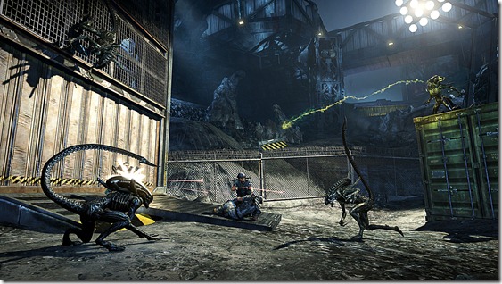 I recently had a chance to get my hands on Aliens: Colonial Marines’ Escape Mode. The demo cast me and three others as four marines from the film Aliens: Apone, Hudson, Hicks (who I played) and Drake. If those names don’t mean anything to you, don’t worry about it, they were essentially just skins with a tiny bit of voice work. Our goal was simply to escape, accomplishing various tasks (like flipping circuit breakers) in order to do so. When the match began, I was given the ability to chose my loadout from three different options. I chose the one that looked most familiar to me (the M41A Pulse Rifle, a shotgun, and a pistol), but I also saw one of my teammates wielding a flamethrower. As soon as we’d decided our loadouts and gotten a handle on the controls (which were very similar to those in Gearbox’s Borderlands, LT to aim, RT to fire, RB for grenades, etc.) my team basically split up. This was a mistake. You see, the Xenomorphs in this game were being played by Gearbox employees… and they were vicious. While there were only four Xenomorphs in the game at any time, it felt like they were more. They moved quickly, blended into the dark environment, and did a very good job of making life miserable when I wasn’t sticking close to my teammates. Aside from your average Xenomorphs that just ran around and attacked the marines, there were also acid spitting aliens that could attack from afar. They crawled along walls, up elevators and hid behind corners, making it feel as though they were coming from all sides. Even their acidic blood was damaging.