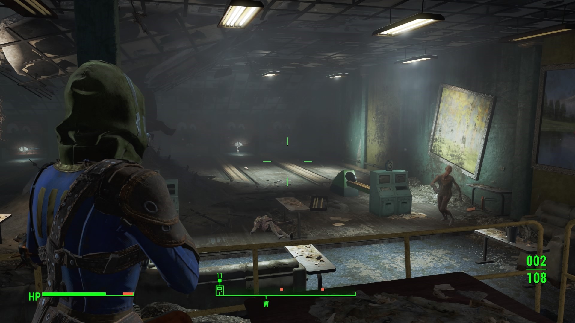 Maybe it’s my girly side, but I’m especially fond of the Aldersea Day Spa. There’s nothing exceptional or extraordinary to grab in terms of loot. It’s just a well constructed building that looks exactly like the thing it’s supposed to be. There’s a swimming pool, which probably would have been lovely in its hay day. Locker and massage rooms abound. Oh, right, and there are the super mutants. Like, they’re the Super Mutant Overlord varieties. Creeping around, trying not to be seen by these monstrous enemies while exploring every area gives you the opportunity to appreciate the ambiance and how something relaxing could become so horrifying.