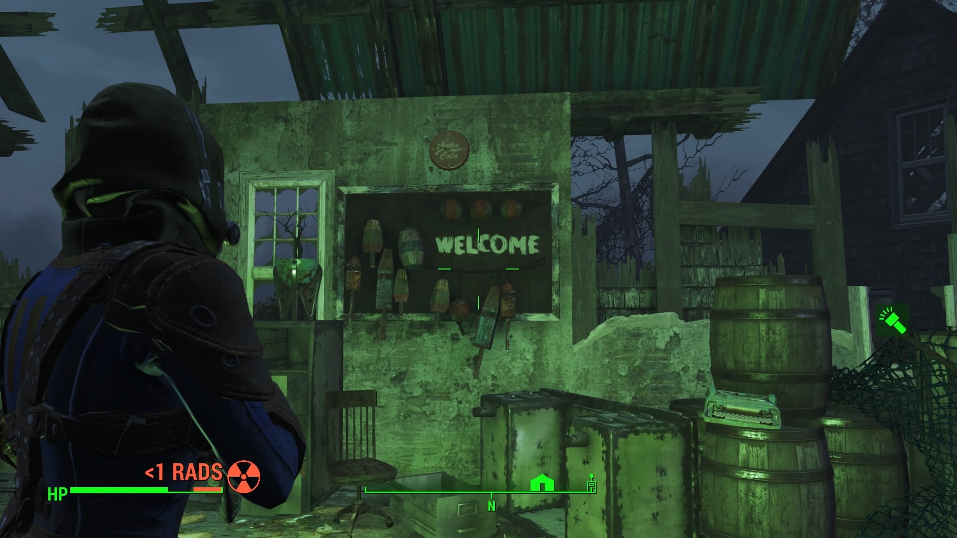 Eden Meadows Cinemas is another fun spot, mainly because of Bethesda paying attention to details and having Fallout 4’s Far Harbor embrace a more recreational atmosphere. We’re no strangers to drive-ins, but this one is intact and works. When you first drop in, Ghouls will be watching Last Stand at Fort McGee, transfixed by the looping title sequence. You can head up to the projector booth and switch to the other movie, Night of the Fish Man’s Revenge, on the other screen. Do so, and the Ghouls move to watch it. The detail that went into the movie clips, combined with the joy of watching Ghouls react to the stimulus and opportunity to use a weapons workbench and grab a Vault-Tec lunchbox and Nuka-Cola Quantum, make it one of Far Harbors’ best incidental locations.