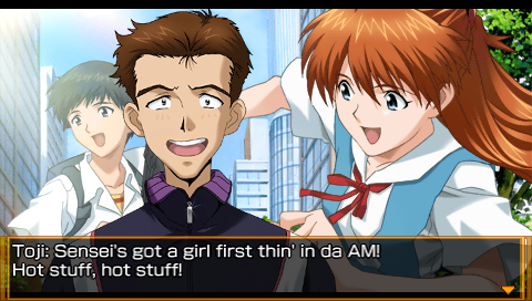 A fan has translated a PSP Evangelion dating sim/visual novel side story that explores Shinji’s relationships with Asuka and Rei in a more peaceful alternate reality.