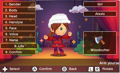 I’m finally playing Fantasy Life and I am so excited. You all have no idea. I was this close to importing a Japanese copy for my import 3DS LL, but that E3 2014 announcement caught me right before I did. However, now that it’s in my hands, on my 3DS, I’m not actually playing it yet. The thing is, Fantasy Life has one of those character customization introductions. You know the ones. Anyone that has ever dabbled in an MMO or Saints Row game has had this experience. You’re hyped to play the game, you’ve sequestered yourself so nothing can interrupt the experience, and you realize you have a gazillion options to choose from. It took me 30 minutes to create a character. First was gender. This was an easy answer. I always play as a woman, when I can, because I am one. Next, I was able to choose a body type. There were five different options and 10 different skin colors. Nobody’s getting left out. This was a quick pick, though I spent a few minutes trying to tell the difference between different shades of “pale”. It was easy to pick out a head, too. There were six different styles.
