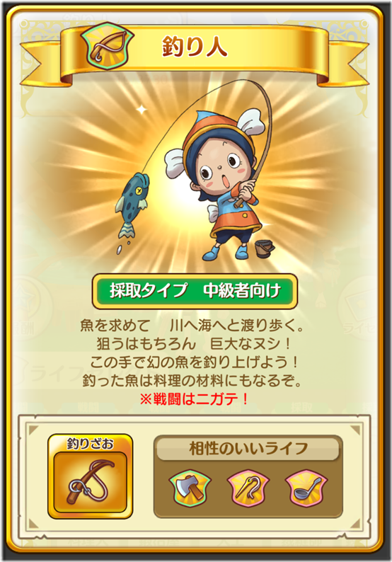 The Angler fights on the battlefield of rivers and oceans, pitting their wits against fish of all sorts. They can’t fight very well with their fishing rods, but they can cook up a delicious fish meal for those who care to try some. Perhaps you’ll be the one to fish up the mythical fish talked about in legends? Fantasy Life Online launches in Japan in Summer 2018 for iOS and Android. Previously, a new trailer was revealed, which you can find here.