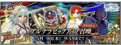 The banner featuring Altera, Lancelot, and Boudica starts on April 11 at 7:00am JST and will be available through May 9 at 9:59am JST: