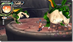 Playing as Toriko, you throw knives, forks, and beat up beasts on Megamori Island with giant pillars to turn them into a meal.