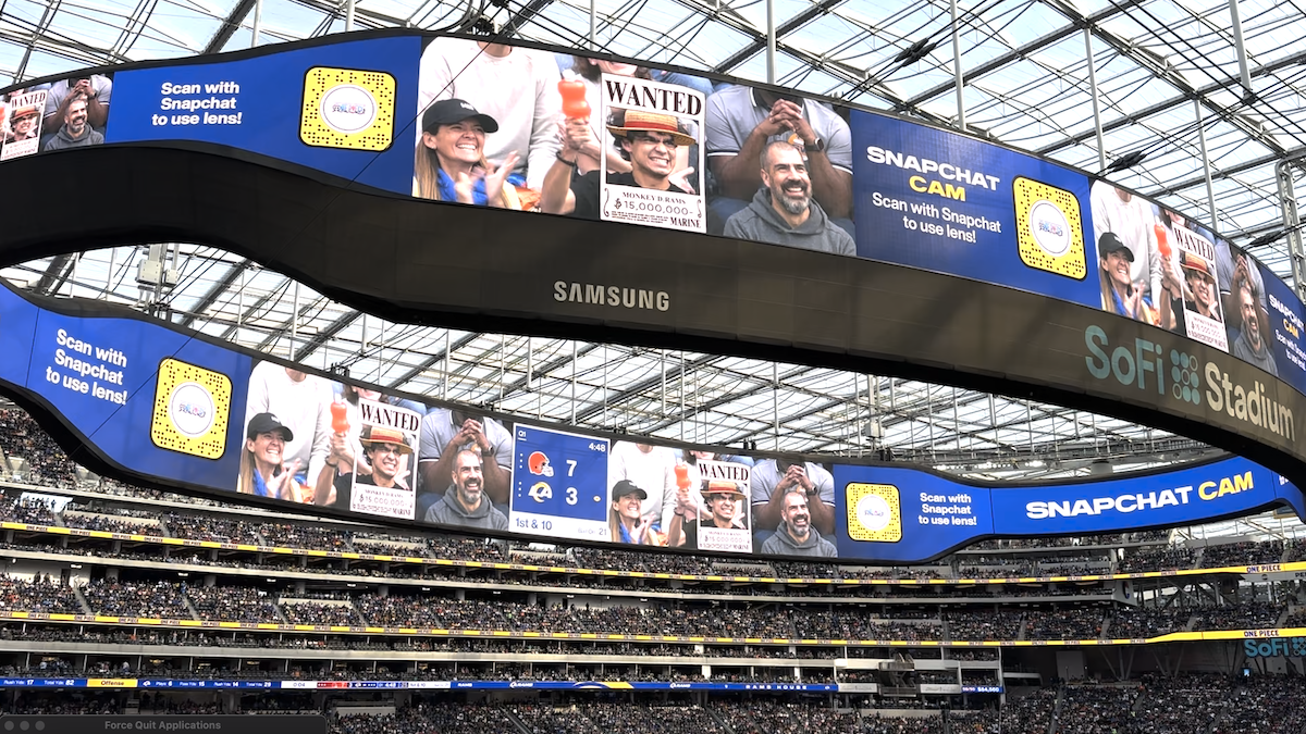 Following the ad, there was a Snapchat filter promoted where people would be marked with a wanted poster and a bounty. The first person to appear during the Snapchat filter’s activation happened to be Iñaki Godoy, the actor of Monkey D. Luffy in the Netflix live-action adaption of One Piece. Godoy happened to be at the Rams vs. Browns game to witness the festivities going on.