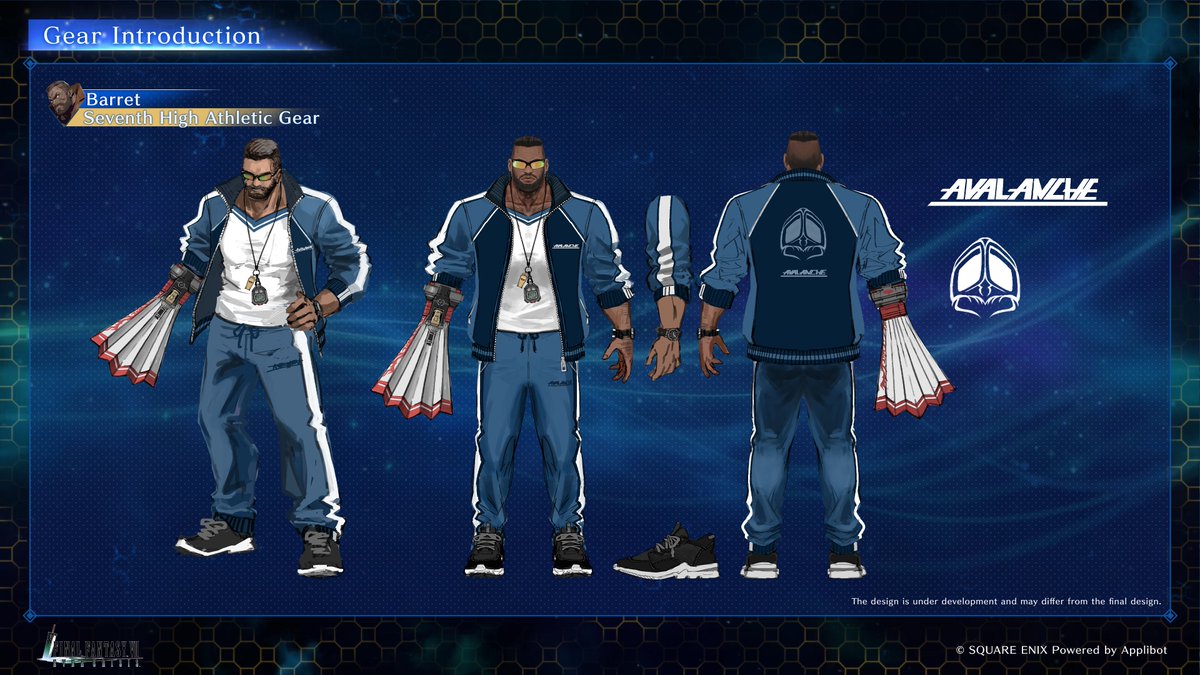 Here’s the FFVII Ever Crisis concept art showing the high school uniforms for Aerith and Tifa and gym teacher costume for Barret.