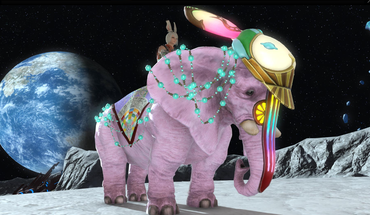 Players will be able to obtain a total of two different mounts and minions, along with a new set of gear from the Aglaia raids, through FFXIV Patch 6.3. The minions include a Corgi, and what appears to be a small ghost resembling Mama from Nier Re[in]carnation. Whereas the two new mounts include a large, pink elephant and another airship. A single player is shown riding the elephant. It is unknown if the airship will allow for multiple people to ride it. The gear from the Aglaia raid follows the same kind of design as previous sets. However, this new tier includes more pieces of armor and is adorned with crystals. You can take a look at the new mounts, minions, and gear set below.
