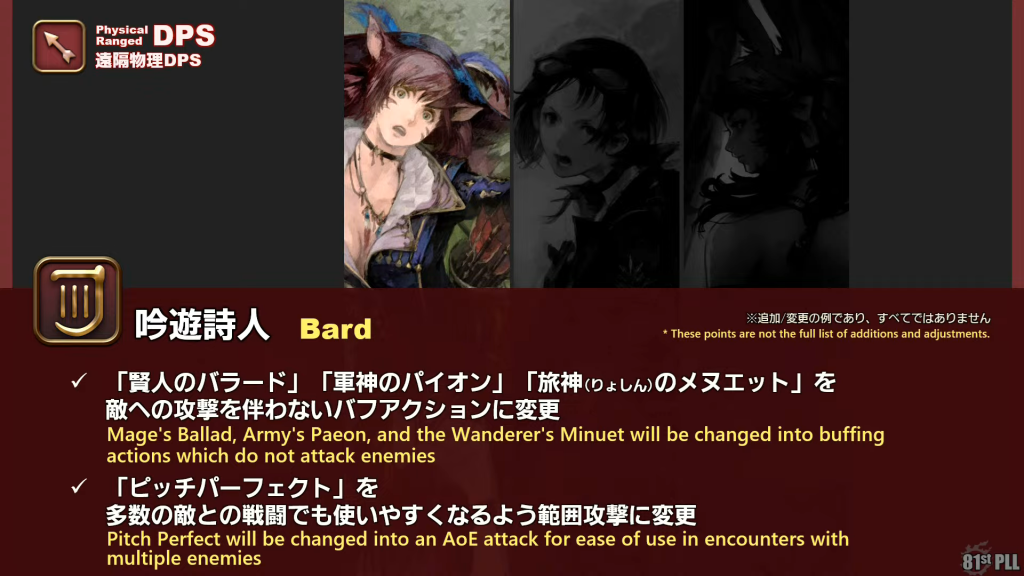 As for the changes made to Bard, Mage’s Ballad, Army’s Paeon, and the Wanderer’s Minuet will become buffing actions that do not attack enemies. Meanwhile, Pitch Perfect will be turned into an AoE attack for encounters with multiple enemies. Other changes include the Straight Shot Read and Shadow Bite Ready procs will become merged, or streamlined, to be able to select the proc to between single-target or AoE.