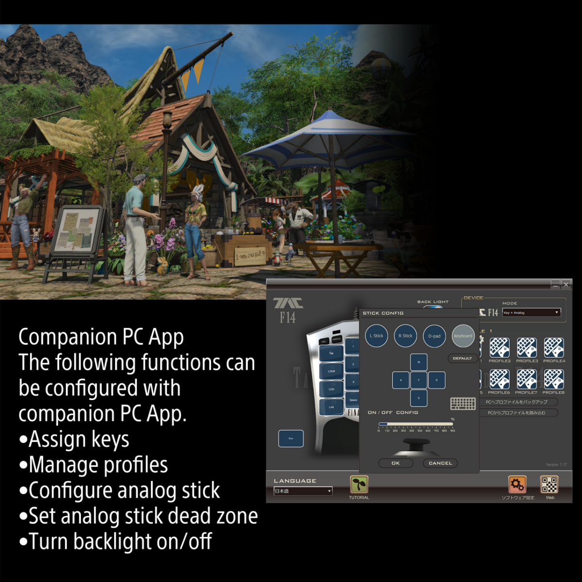 There are 21 keys on the FFXIV HORI Tactical Assault Commander F14 keypad controller. Each one of those can be programmed to someone’s liking. People also have dedicated Esc and Profile buttons, as well as a joystick. Backlight functionality is present to help make things clearer to see. There is a companion app for PCs to work with it, which allows people to set up different profiles and customize the controller.