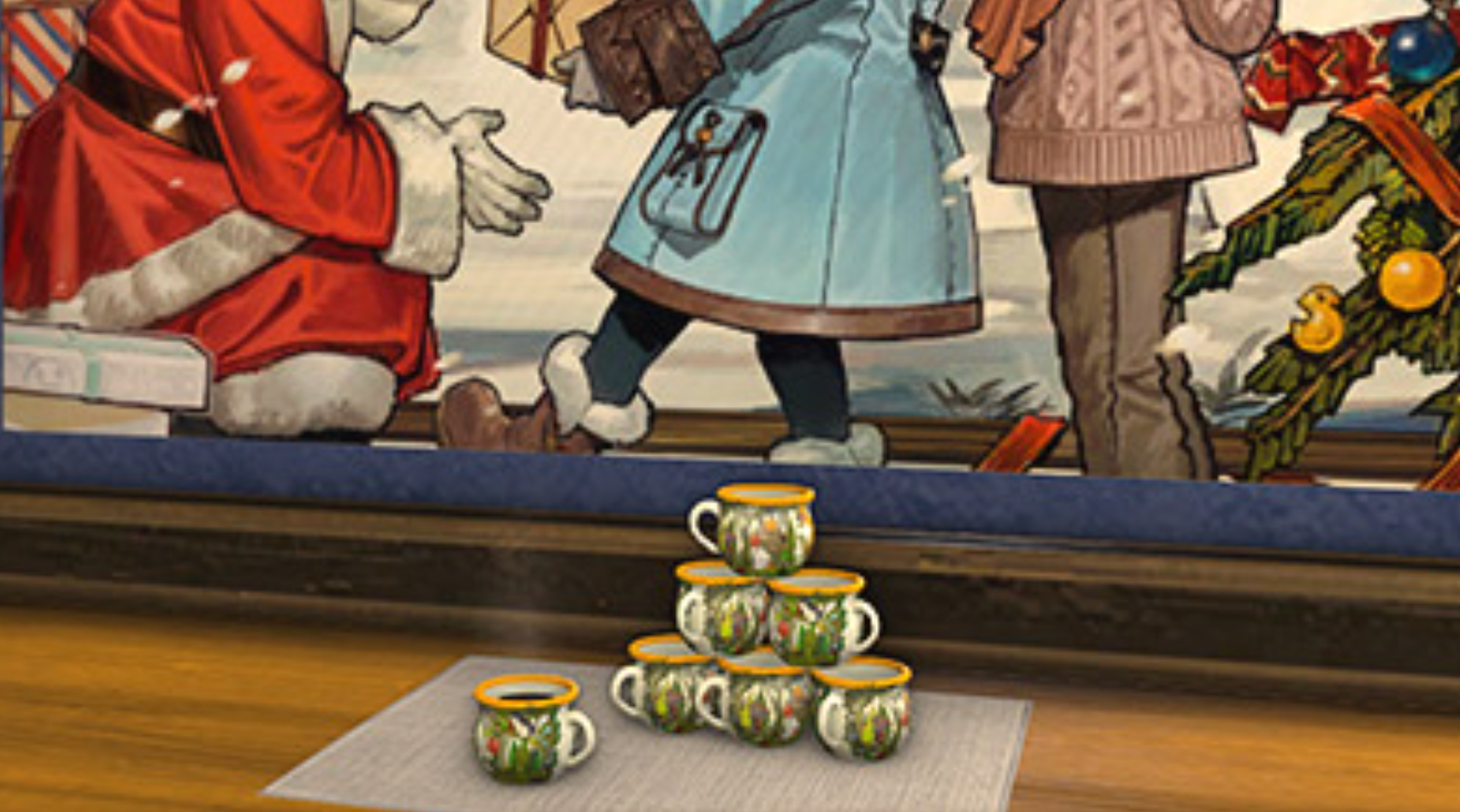 We’ve seen the Gridanian Starlight Kinderpunsch mug appear multiple times in FFXIV. It first appeared as a furnishing reward during the 2024 installment of the event, both as a single mug and tower. In 2025, it showed up in the Gridanian Gulp and Gridanian Sup emotes. It features a forested Gridania backdrop with Moogles flying around, and the cup resembles the sorts of ones we see at Christkindlmarkets in the real world.