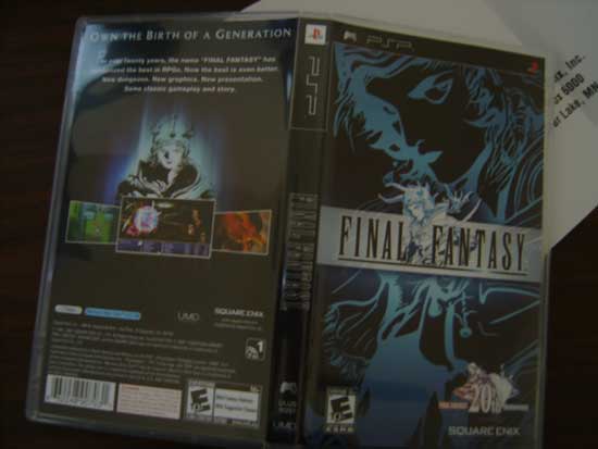 Square-Enix usually deviates from the centered logo on a white background Japanese box art when it comes to the Final Fantasy series. This time they gave the packaging for the US version of Final Fantasy: Anniversary Edition a chic look. They’ve got the warrior from the CG movie splattered on the front cover outlined in electric blue on black background, a significant change from a montage of the main cast seen in other Final Fantasy games. See what’s inside the box past the break.