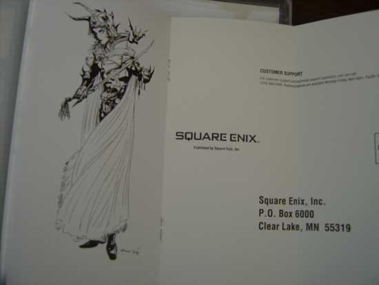 The warrior is everywhere on the packaging even the registration card. Square-Enix USA must have really loved Amano’s illustration.