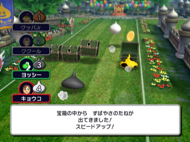 A staple from Final Fantasy VII found its way onto the Wii with a Dragon Quest twist. In Square Enix’s Mario meets Dragon Quest crossover you can race slimes. It’s one of the mini-games at the casino in Fortune Street.