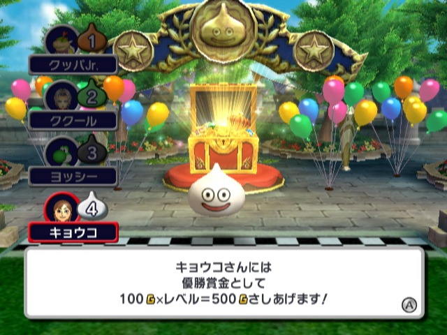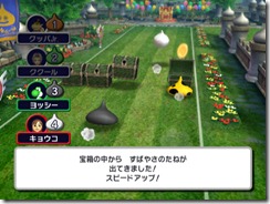 All four players in the Monopoly style board game can compete in slime racing. Each player picks a slime, she-slime, or mottle slime then the race begins. You can’t control the slimes though. Everyone watches to see who is the winner and that player gets a bunch of gold.