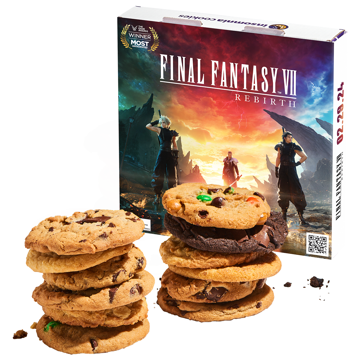 Square Enix and Insomnia Cookies kicked off a Final Fantasy VII Rebirth cookie promotion. People’s boxes of cookies with certain orders from the official site will have art from the game on it.