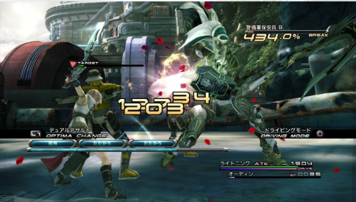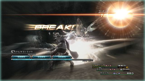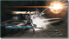 The dramatic looking break screenshot takes place after an enemy is hit from a chain combo. Enemies inflicted with break status take extra damage and could be launched in the air in the Final Fantasy XIII trial version.