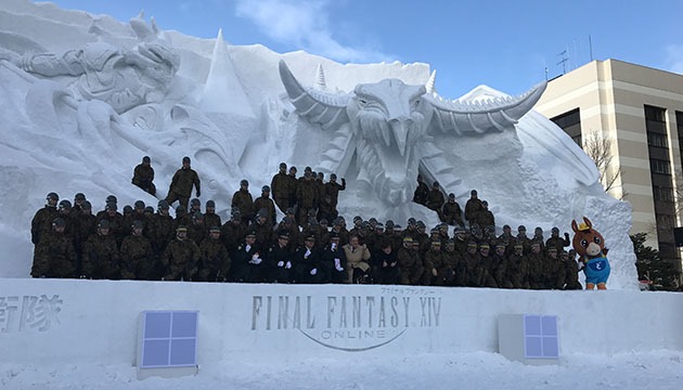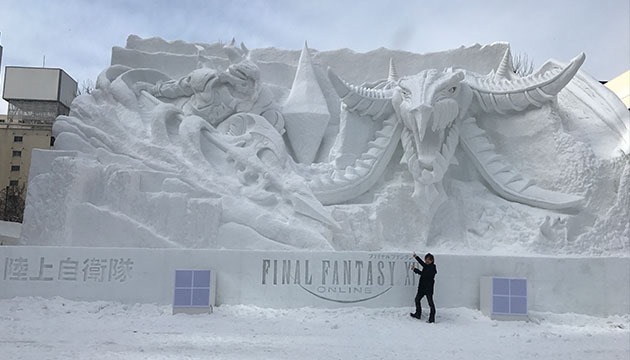 sapporo snow fest ffxiv 1 The 69th Sapporo Snow Festival was held earlier this month in Sapporo, Japan, and one of the centerpieces was a giant Final Fantasy XIV snow sculpture (named ‘The Silver Decisive Battle), complete with projection mapping that lit up the sculpture at night.   sapporo snow fest ffxiv 5