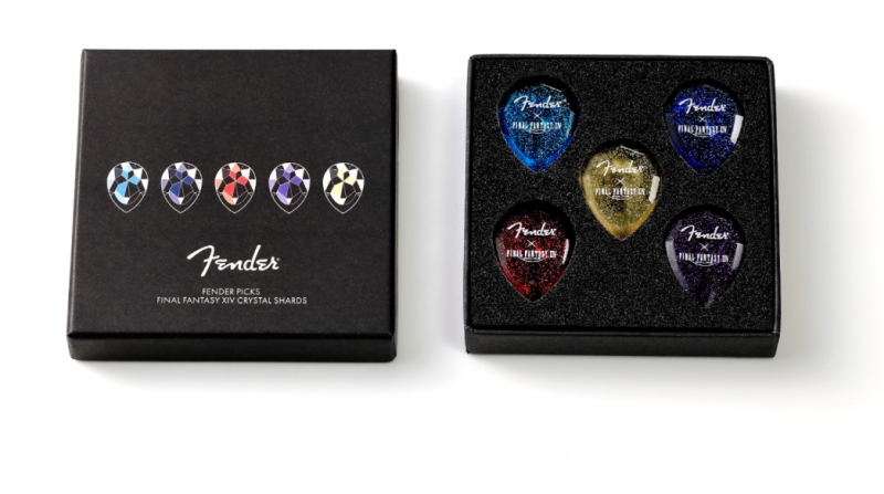 In addition, the Final Fantasy XIV guitar picks come in various sizes. Each is about 3.7mm thick at maximum. A concave cut on the rear side of the pick makes it easier grip. The set includes five colors named after the Japanese title of each FFXIV expansion: “Eorzea Reborn” (A Realm Reborn, light blue), “The Blue Sky of Ishgard” (Heavensward, dark blue), “Crimson Liberator” (Stormblood, red), “Jet-Black Villains” (Shadowbringers, purple) and “Dawn’s Finale” (Endwalker, white). All the picks are tapered towards their ends to facilitate use. The set also includes a special storage box. The FFXIV Crystal Shards guitar picks are available for pre-order on Fender Music’s Japanese website. The set costs JPY 4,400 (about USD $38). The special Final Fantasy XIV Stratocaster costs JPY 396,000 (about USD $3,442). The game itself is available for PS4, PS5, and PC. The Endwalker expansion will launch on December 7, 2021.