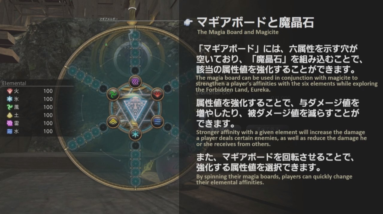 - The Magia Board can be used in conjunction with Magicite to strengthen a player’s affinities with the six elements while exploring the Forbidden Land, Eureka.