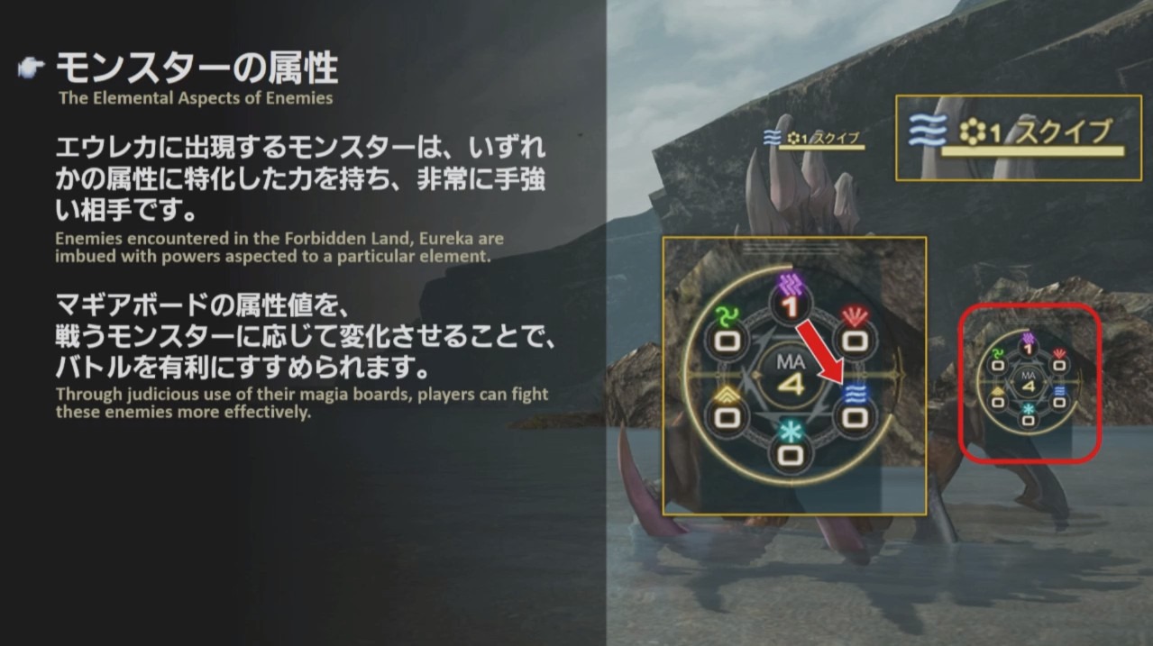 - Enemies encountered in the Forbidden Land, Eureka are imbued with powers aspected to a particular element.