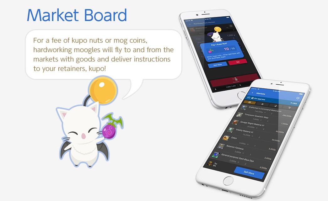 Final Fantasy XIV’s Companion app has been long in the works and Square Enix announced that it’ll finally be available sometime around late July for iOS and Android. The Final Fantasy XIV Companion app comes in two plans, Free Plan and Premium Plan. All players are eligible for the Free Plan while the Premium Plan is available for 500 yen extra a month for additional features in addition to those provided by the Free Plan. Both Free and Premium Plans will allow players to chat with friends, check out the Market Board, and put up items for sale or purchase items. The Premium Plan also doubles your Saddlebag capacity, and allows you to hire an additional retainer (Meaning if you’ve reached the previous limit of 9, you can hire one more for a total of 10.)