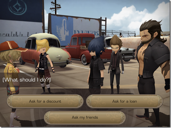 I even love how Final Fantasy XV: Pocket Edition includes some of the little features that made the main game so unique. You still get to camp out, though you do not have to rely on camping to distribute experience points. Cactaurs are still on maps, but it is not an ordeal to find or challenge them as it was before. When you take a quest, you can make decisions that alter the rewards you will receive from completing them. The car rides are still there, complete with Ignis’ visible driving gloves, and you can enjoy the scenery while cruising on the highway.