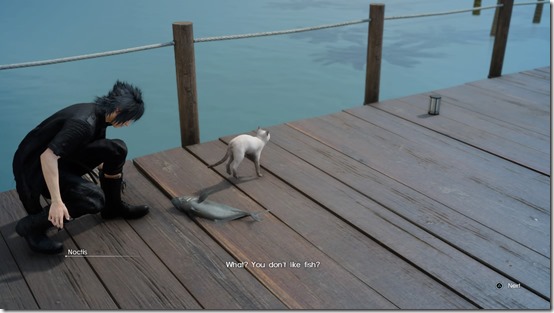 Once you do get out on the road again, there’s this sense of freedom. You can have Ignis act as the driver during the day time, automatically taking you from place to place. Yet, even if you do this, it’s possible to have him pause so you can immediately take in some roadside sight or random activity. Noctis can also drive, and is the only option for night rides, giving you a chance to go almost anywhere you want. Almost, in that there are still given paths you have to stick to. You can’t just go off-road and start driving anywhere you want. It’s basically turning when you can reach other main or side roads, but otherwise holding down the right trigger to keep moving forward. Fuel isn’t too scarce a commodity, the maps are well laid out after finding tips from people at restaurants, and it’s really like being on a road trip with friends. You know where you should go, but it’s easy to pause and take a moment along the way. Especially if you find a photo spot where one or all of the guys can get together for a group photo.